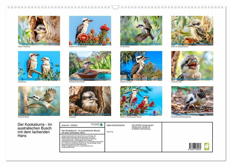 QUALITÄT - Hochwertiger Fotokalender mit 12 wunderschönen Motiven auf lichtbeständigem Bilderdruckpapier, robuste Spiralbindung mit Aufhängebügel.NACHHALTIG - deutliche Abfallreduzierung durch bedarfsgerechte Einzelstückfertigung, umweltfreundliches FSC-zertifiziertes Papier, Produktion in Deutschland, klimabewusste Logistik.PERFEKTES GESCHENK - Kalender für Freunde und Familie, für Kinder und Erwachsene, jung und alt, zu Weihnachten, Geburtstag oder zwischendurch.VIELFALT - Bildkalender in verschiedenen Formaten, z.B. DIN A5, DIN A4, DIN A3 sowie DIN A2. Ob Naturmotiv, Gemälde oder Fotos, ideal für ein persönliches Wohlfühlambiente.KI-generierte Einblicke in das Kookaburra-Leben im Outback von Autor(in): Anja Frost