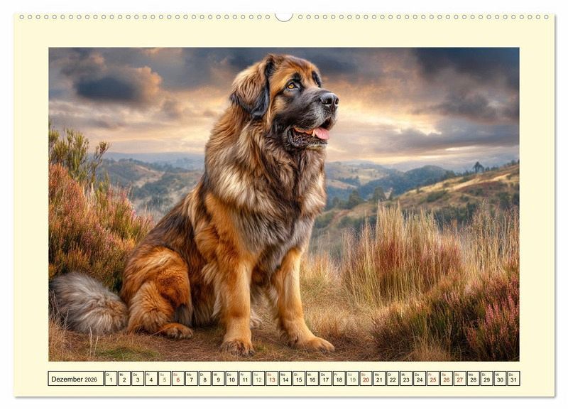 Dieser Kalender widmet sich der majestätischen Erscheinung und dem sanftmütigen Wesen des Leonbergers. Jede Szene erzählt eine stille Geschichte von Treue, Gelassenheit und Stärke. Alle Bilder wurden mit der Hife von KI erstellt und zeigen diese schönen Hunde inmitten idyllischer Landschaften, mal wachsam, mal verspielt, mal in stolzer Ruhe. Ein Herzensprojekt für alle Hundefreunde, die die sanfte Kraft dieser besonderen Rasse lieben.