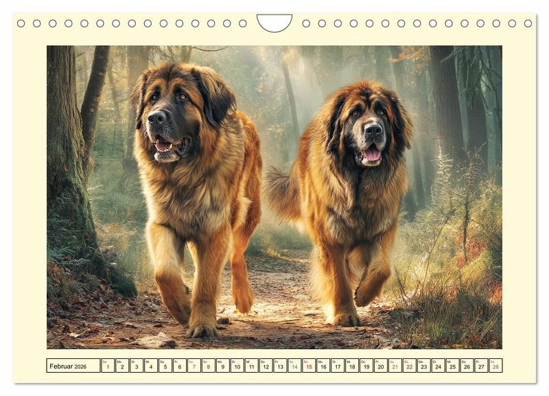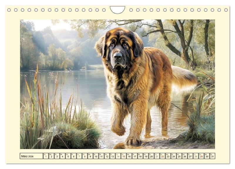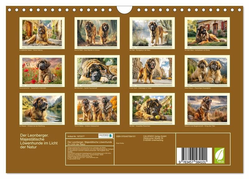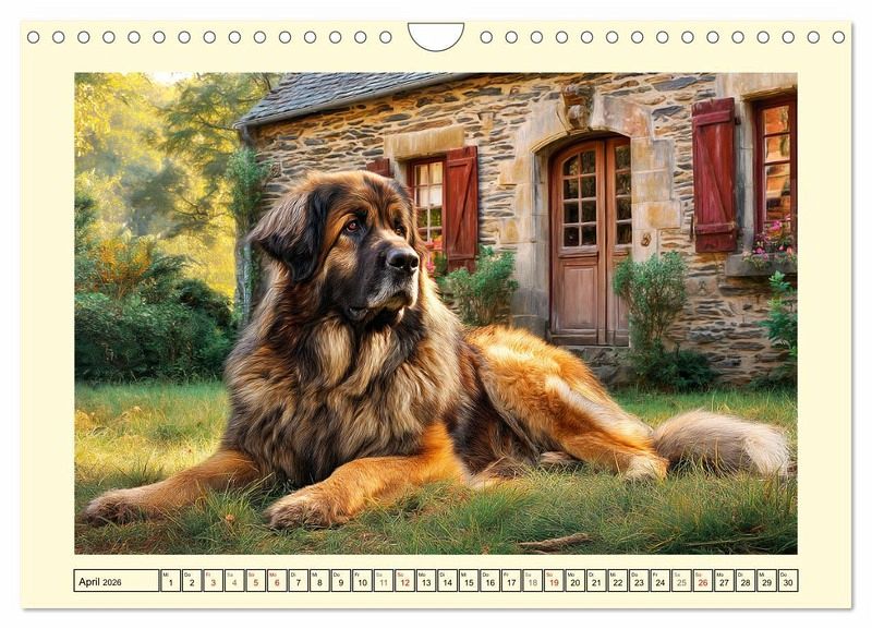 Dieser Kalender widmet sich der majestätischen Erscheinung und dem sanftmütigen Wesen des Leonbergers. Jede Szene erzählt eine stille Geschichte von Treue, Gelassenheit und Stärke. Alle Bilder wurden mit der Hife von KI erstellt und zeigen diese schönen Hunde inmitten idyllischer Landschaften, mal wachsam, mal verspielt, mal in stolzer Ruhe. Ein Herzensprojekt für alle Hundefreunde, die die sanfte Kraft dieser besonderen Rasse lieben.
