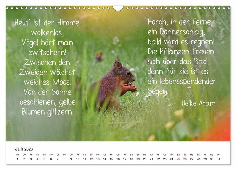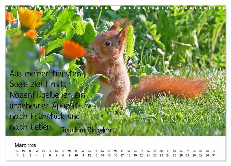 Seit wir vor wenigen Jahren in ein Reihenhaus mit Garten, in dem Eichhörnchen leben, gezogen sind, sind Eichhörnchen unsere Leidenschaft! Da die Eichhörnchen einfach immer viel Freude machen, wurden die Fotos mit passenden Sprüchen versehen. Ein Kalender, der gute Laune macht, Monat für Monat!