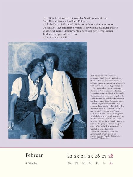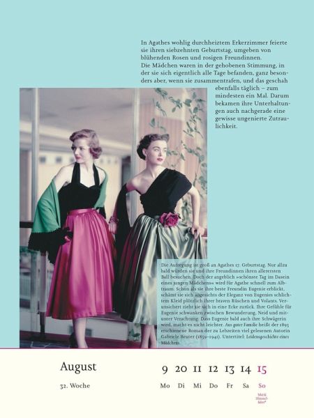Der Literarische Frauenkalender 2027 bietet wieder Woche für Woche ein faszinierendes Stück weiblicher Kultur- und Wissenschaftsgeschichte in Text und Bild - mit Zitaten und Biografien von Hannah Arendt, Mary McCarthy, Carson McCullers, Paula Modersohn-Becker, Vita Sackville-West, Annemarie Schwarzenbach, Clara Westhoff, Virginia Woolf u.v.m.