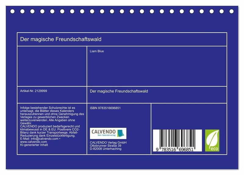 Entdecken Sie den magischen Freundschaftswald - ein liebevoll von KI generiertes Kalenderabenteuer für Kinder und Familien. Zwölf märchenhafte Bilder zeigen, wie große Tiere und kleine Wesen in einer leuchtenden, friedlichen Fantasiewelt zu Freunden werden. Die farbenfrohen Motive laden zum Träumen ein, fördern Fantasie und Freude an Natur und Freundschaft. Jeder Monat erzählt seine eigene kleine Geschichte von Zusammenhalt, Mut und Magie - perfekter Begleiter durch das Jahr für kleine und große Entdecker.