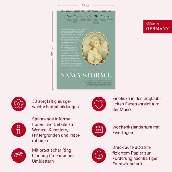 - Ein inspirierender Begleiter für das Jahr 2026: Inspirationen können wie Funken sein, die unser inneres Feuer entzünden und uns antreiben, Großes zu erschaffen. Aber woher kommt Inspiration und was sind ihre Ursprünge? Manche Musiker suchen sie in der Natur, andere brauchen die pure Stille, um ihre Kreativität entfachen zu können, einige suchen den Austausch mit Kolleginnen oder Kollegen, die anderen wiederum finden sie in benachbarten Künsten, fremden Kulturen oder gutem Essen. In den Kompositionen von Meistern und den Interpretationen von virtuosen Künstlerinnen und Künstlern finden wir immer wieder unterschiedliche Quellen der Inspiration, die Kreativität, Freude, Sehnsucht, Liebe und Leidenschaft wecken. Und was, wenn sie ausbleibt? Kann man sie suchen, gar erzwingen? Der Musik Kalender 2026 lässt Woche für Woche miterleben, dass die Quellen der Inspiration für Musikerinnen und Musiker so vielfältig sind wie die Musik selbst. - Hochwertige Inhalte mit musikalischem Fokus: Jede Woche widmet sich einem Thema aus der Welt der Musik. In sorgfältig ausgewählten Bildern und Zitaten sowie erläuternden Begleittexten nimmt uns die Musikwissenschaftlerin und Herausgeberin Melanie Unseld wieder mit auf eine einzigartige Reise durch die Musikgeschichte.- Mehr als nur ein Kalender: Dieser sorgfältig gestaltete Musikkalender verbindet die Welt der Musik mit fesselnden visuellen Eindrücken. Der Kalender 2026 ist ein wertvoller Begleiter, der nicht nur organisiert, sondern auch inspiriert.- Das ideale Geschenk für Musikbegeisterte: Auf der Suche nach einem außergewöhnlichen Geschenk? Der Wandkalender 2026 ist eine perfekte Wahl für Musikerinnen, Musikliebhaber und Freunde der Musikgeschichte. Er kombiniert praktische Übersichtlichkeit mit Inhalten, die Freude bereiten und den Alltag bereichern.- Ein Jahr voller Inspiration: Die edition momente im Athesia Kalenderverlag