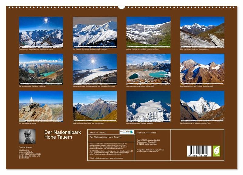 PREMIUM-LINIE - Brillanter Fotokalender mit 12 wunderschönen Motiven, Kunstdruck in Hochglanz in Museumsqualität.QUALITÄT - edle Materialien, stabile Rückwand mit 2 innovativen Einstecktaschen für eine optimale Präsentation an der Wand.NACHHALTIG - deutliche Abfallreduzierung durch bedarfsgerechte Einzelstückfertigung, umweltfreundliches FSC-zertifiziertes Papier, Produktion in Deutschland, klimabewusste Logistik.PERFEKTES GESCHENK - Kalender für Freunde und Familie, für Kinder und Erwachsene, jung und alt, zu Weihnachten, Geburtstag oder zwischendurch.Die schönsten Impressionen im Nationalpark Hohe Tauern von Autor(in): Christa Kramer