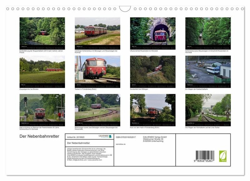QUALITÄT - Hochwertiger Fotokalender mit 12 wunderschönen Motiven auf lichtbeständigem Bilderdruckpapier, robuste Spiralbindung mit Aufhängebügel.NACHHALTIG - deutliche Abfallreduzierung durch bedarfsgerechte Einzelstückfertigung, umweltfreundliches FSC-zertifiziertes Papier, Produktion in Deutschland, klimabewusste Logistik.PERFEKTES GESCHENK - Kalender für Freunde und Familie, für Kinder und Erwachsene, jung und alt, zu Weihnachten, Geburtstag oder zwischendurch.VIELFALT - Bildkalender in verschiedenen Formaten, z.B. DIN A5, DIN A4, DIN A3 sowie DIN A2. Ob Naturmotiv, Gemälde oder Fotos, ideal für ein persönliches Wohlfühlambiente.Uerdinger Schienenbus: Der Nebenbahnretter von Autor(in): Jan van Dyk