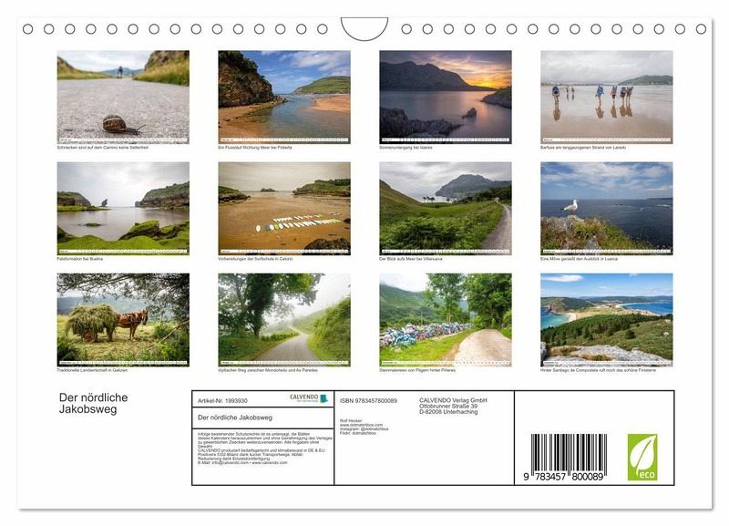 QUALITÄT - Hochwertiger Fotokalender mit 12 wunderschönen Motiven auf lichtbeständigem Bilderdruckpapier, robuste Spiralbindung mit Aufhängebügel.NACHHALTIG - deutliche Abfallreduzierung durch bedarfsgerechte Einzelstückfertigung, umweltfreundliches FSC-zertifiziertes Papier, Produktion in Deutschland, klimabewusste Logistik.PERFEKTES GESCHENK - Kalender für Freunde und Familie, für Kinder und Erwachsene, jung und alt, zu Weihnachten, Geburtstag oder zwischendurch.VIELFALT - Bildkalender in verschiedenen Formaten, z.B. DIN A5, DIN A4, DIN A3 sowie DIN A2. Ob Naturmotiv, Gemälde oder Fotos, ideal für ein persönliches Wohlfühlambiente.Der traumhafte Camino del Norte an Spaniens Nordküste von Autor(in): dotmatchbox