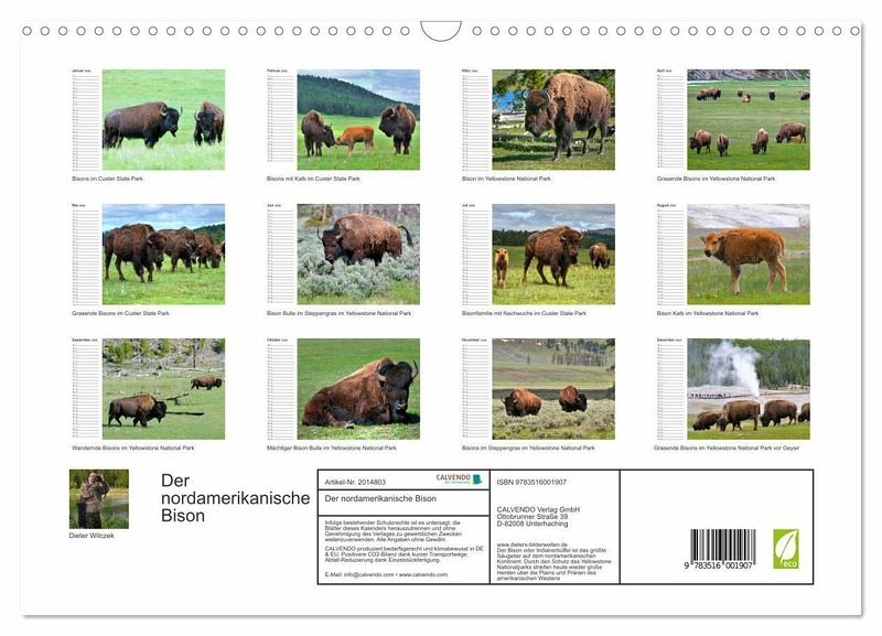 QUALITÄT - Hochwertiger Fotokalender mit 12 wunderschönen Motiven auf lichtbeständigem Bilderdruckpapier, robuste Spiralbindung mit Aufhängebügel.NACHHALTIG - deutliche Abfallreduzierung durch bedarfsgerechte Einzelstückfertigung, umweltfreundliches FSC-zertifiziertes Papier, Produktion in Deutschland, klimabewusste Logistik.PERFEKTES GESCHENK - Kalender für Freunde und Familie, für Kinder und Erwachsene, jung und alt, zu Weihnachten, Geburtstag oder zwischendurch.VIELFALT - Bildkalender in verschiedenen Formaten, z.B. DIN A5, DIN A4, DIN A3 sowie DIN A2. Ob Naturmotiv, Gemälde oder Fotos, ideal für ein persönliches Wohlfühlambiente.Indianerbüffel vor der beeindruckenden Kulisse des Yellowstone Nationalparks von Autor(in): Dieter Wilczek