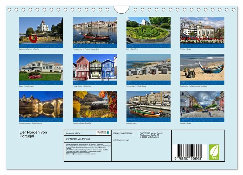 Die Regionen entlang des Flusses Douro von Porto aufwärts mit Städten wie Braga, Amarante, Santo Tirso .....Es gibt viel zu entdecken im Norden. Historische Architektur, weite Sandstrände und belebte Städte. Wir haben unsere schönsten Ansichten in diesem Wandkalender zusammengestellt .
