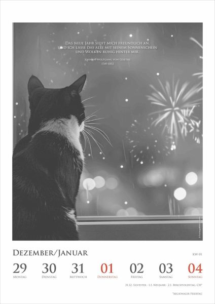 Jedes Kalenderblatt verbindet ausdrucksstarke Bilder mit poetischen Zitaten und tiefsinnigen Gedanken, die Ihre Tage bereichern und Momente der Ruhe schenken. Ideal für Katzenliebhaber und Freunde der leisen Poesie, die sich von der Schönheit und Gelassenheit der Samtpfoten verzaubern lassen möchten.