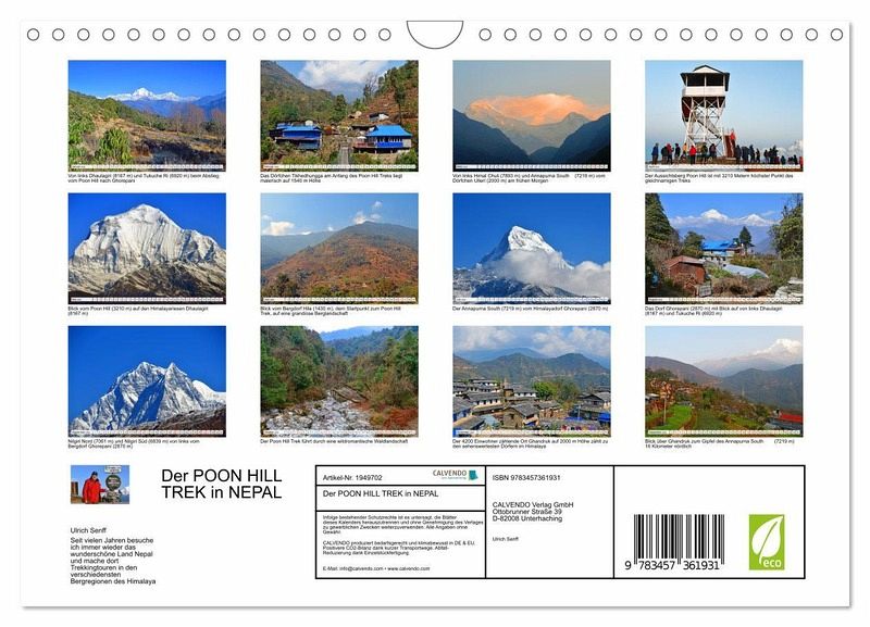 QUALITÄT - Hochwertiger Fotokalender mit 12 wunderschönen Motiven auf lichtbeständigem Bilderdruckpapier, robuste Spiralbindung mit Aufhängebügel.NACHHALTIG - deutliche Abfallreduzierung durch bedarfsgerechte Einzelstückfertigung, umweltfreundliches FSC-zertifiziertes Papier, Produktion in Deutschland, klimabewusste Logistik.PERFEKTES GESCHENK - Kalender für Freunde und Familie, für Kinder und Erwachsene, jung und alt, zu Weihnachten, Geburtstag oder zwischendurch.VIELFALT - Bildkalender in verschiedenen Formaten, z.B. DIN A5, DIN A4, DIN A3 sowie DIN A2. Ob Naturmotiv, Gemälde oder Fotos, ideal für ein persönliches Wohlfühlambiente.Bilder von einer landschaftlich herrlichen Einstiegstour in der Annapurna Region von Autor(in): Ulrich Senff