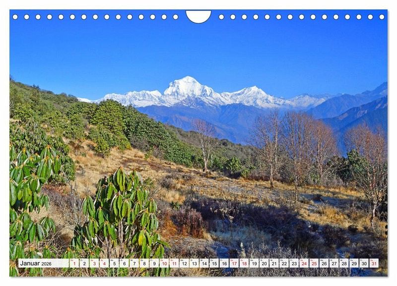 Die fantastische Landschaft des Himalaya lockt immer wieder viele Bergfreunde nach Nepal. Der zirka fünftägige Trek von Pokhara zum Aussichtspunkt Poon Hill auf 3210 m Höhe zählt zu den landschaftlich besonders schönen Einstiegstouren in Nepals Himalaya Region. Die Tour führt durch eine herrliche Naturlandschaft mit vielen Rhododendronwäldern und bietet immer wieder grandiose Ausblicke auf Bergriesen wie Dhaulagiri, Annapurna South, Nilgiri, Himal Chuli, um nur einige zu nennen. Den größten und schönsten Ort in diesem Gebiet, Ghandruk, sollte man dabei unbedingt mit besuchen und dafür nach Möglichkeit einen Tag einplanen. Der Himalaya erfahrene Autor zeigt im Kalender einige seiner wunderschönen Bilder von dieser erlebnisreichen Tour.