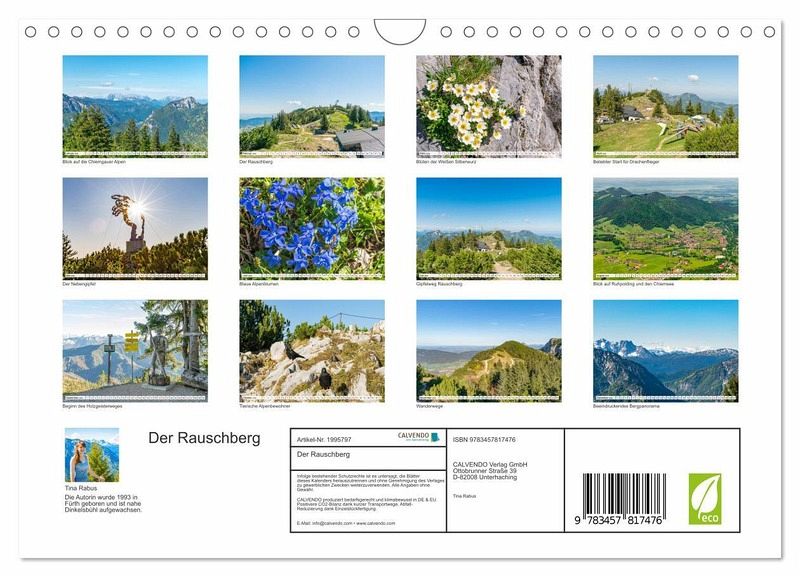 QUALITÄT - Hochwertiger Fotokalender mit 12 wunderschönen Motiven auf lichtbeständigem Bilderdruckpapier, robuste Spiralbindung mit Aufhängebügel.NACHHALTIG - deutliche Abfallreduzierung durch bedarfsgerechte Einzelstückfertigung, umweltfreundliches FSC-zertifiziertes Papier, Produktion in Deutschland, klimabewusste Logistik.PERFEKTES GESCHENK - Kalender für Freunde und Familie, für Kinder und Erwachsene, jung und alt, zu Weihnachten, Geburtstag oder zwischendurch.VIELFALT - Bildkalender in verschiedenen Formaten, z.B. DIN A5, DIN A4, DIN A3 sowie DIN A2. Ob Naturmotiv, Gemälde oder Fotos, ideal für ein persönliches Wohlfühlambiente.Impressionen vom Rauschberg in den Alpen von Autor(in): Tina Rabus