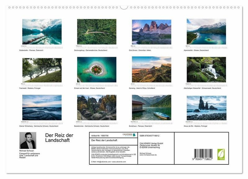 z in Museumsqualität.QUALITÄT - edle Materialien, stabile Rückwand mit 2 innovativen Einstecktaschen für eine optimale Präsentation an der Wand.NACHHALTIG - deutliche Abfallreduzierung durch bedarfsgerechte Einzelstückfertigung, umweltfreundliches FSC-zertifiziertes Papier, Produktion in Deutschland, klimabewusste Logistik.PERFEKTES GESCHENK - Kalender für Freunde und Familie, für Kinder und Erwachsene, jung und alt, zu Weihnachten, Geburtstag oder zwischendurch.Europas schönste Natur von Autor(in): Michael Schwan