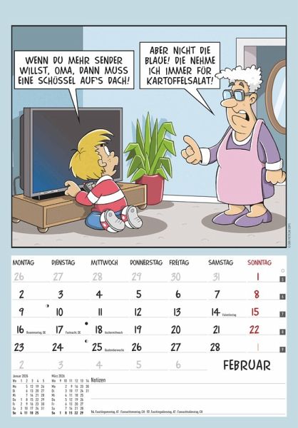 Das übersichtliche Kalendarium unter den Fotomotiven zeichnet sich durch eine große, leserfreundliche Schrift aus, liefert Monat für Monat zahlreiche Zusatzinformationen (z. B. Feiertage oder Mondphasen) und lässt sogar Platz für persönliche Notizen. Zudem finden Sie auf den Rückseiten der Kalenderblätter weitere Hilfsmittel, wie Jahresübersichten und Ferientermine. Der Rentner-Kalender 2026 der Alpha Edition ist nicht nur eine nützliche Hilfe im Alltag, sondern auch ein echter Blickfänger, der jeden Raum schmückt. Ein schöner Wandkalender für alle, die es mit Humor nehmen.