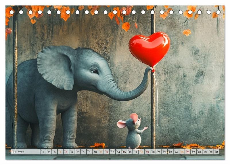 Begleite Elefant und Maus auf einer zauberhaften Reise durch das Jahr! Mit liebevollen Illustrationen, charmanten Szenen und einem Hauch von Magie entführt dich dieser Wandkalender in eine Welt voller Abenteuer, Freundschaft und Fantasie.
