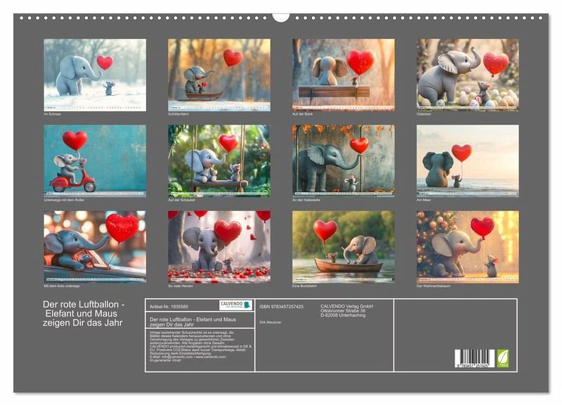 Begleite Elefant und Maus auf einer zauberhaften Reise durch das Jahr! Mit liebevollen Illustrationen, charmanten Szenen und einem Hauch von Magie entführt dich dieser Wandkalender in eine Welt voller Abenteuer, Freundschaft und Fantasie.