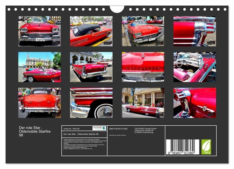 QUALITÄT - Hochwertiger Fotokalender mit 12 wunderschönen Motiven auf lichtbeständigem Bilderdruckpapier, robuste Spiralbindung mit Aufhängebügel.NACHHALTIG - deutliche Abfallreduzierung durch bedarfsgerechte Einzelstückfertigung, umweltfreundliches FSC-zertifiziertes Papier, Produktion in Deutschland, klimabewusste Logistik.PERFEKTES GESCHENK - Kalender für Freunde und Familie, für Kinder und Erwachsene, jung und alt, zu Weihnachten, Geburtstag oder zwischendurch.VIELFALT - Bildkalender in verschiedenen Formaten, z.B. DIN A5, DIN A4, DIN A3 sowie DIN A2. Ob Naturmotiv, Gemälde oder Fotos, ideal für ein persönliches Wohlfühlambiente.Der US-Oldtimer Oldsmobile Starfire 98 in Havanna von Autor(in): Henning von Loewis of Menar