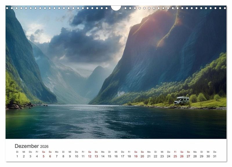 Entdecke die Magie des skandinavischen Campings mit unserem exklusiven, von KI erstellten, Kalender! Jeder Monat präsentiert ein fesselndes Bild, das die Sehnsucht nach endloser Freiheit und atemberaubender Natur in einem Campervan verkörpert. Die majestätischen Fjorde, einsamen Straßen und endlosen Küsten werden dich in ihren Bann ziehen. Dieser Kalender ist nicht nur ein Zeitmesser; er ist ein Fenster zu unvergesslichen Abenteuern und der ideale Begleiter für alle, die das Fernweh im Herzen tragen.