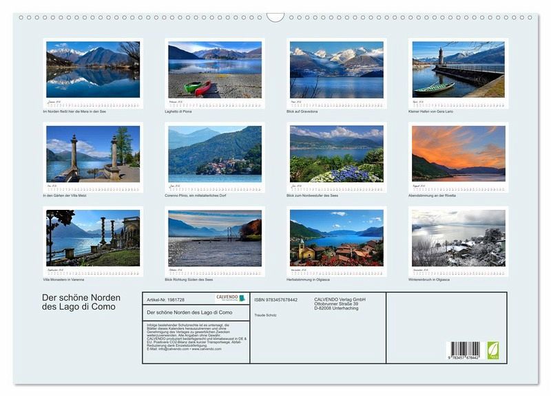 QUALITÄT - Hochwertiger Fotokalender mit 12 wunderschönen Motiven auf lichtbeständigem Bilderdruckpapier, robuste Spiralbindung mit Aufhängebügel.NACHHALTIG - deutliche Abfallreduzierung durch bedarfsgerechte Einzelstückfertigung, umweltfreundliches FSC-zertifiziertes Papier, Produktion in Deutschland, klimabewusste Logistik.PERFEKTES GESCHENK - Kalender für Freunde und Familie, für Kinder und Erwachsene, jung und alt, zu Weihnachten, Geburtstag oder zwischendurch.VIELFALT - Bildkalender in verschiedenen Formaten, z.B. DIN A5, DIN A4, DIN A3 sowie DIN A2. Ob Naturmotiv, Gemälde oder Fotos, ideal für ein persönliches Wohlfühlambiente.Sehnsuchtsort Comer See von Autor(in): Traude Scholz