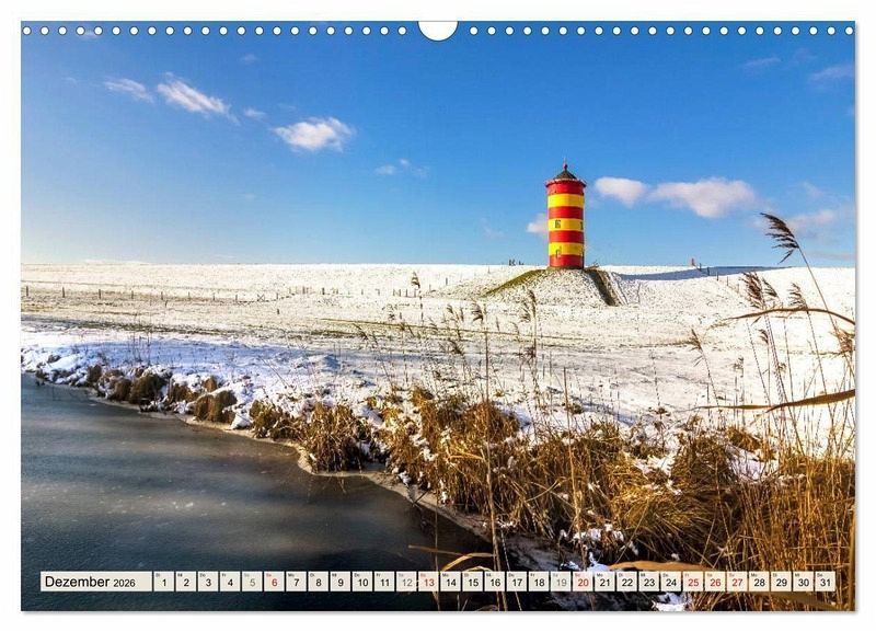 Dezember: Blick zum Pilsumer Leuchtturm