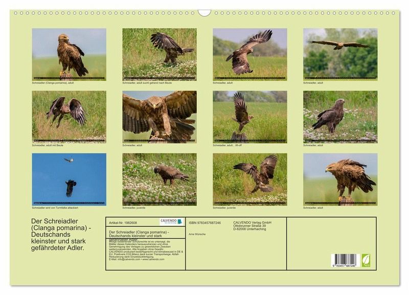 QUALITÄT - Hochwertiger Fotokalender mit 12 wunderschönen Motiven auf lichtbeständigem Bilderdruckpapier, robuste Spiralbindung mit Aufhängebügel.NACHHALTIG - deutliche Abfallreduzierung durch bedarfsgerechte Einzelstückfertigung, umweltfreundliches FSC-zertifiziertes Papier, Produktion in Deutschland, klimabewusste Logistik.PERFEKTES GESCHENK - Kalender für Freunde und Familie, für Kinder und Erwachsene, jung und alt, zu Weihnachten, Geburtstag oder zwischendurch.VIELFALT - Bildkalender in verschiedenen Formaten, z.B. DIN A5, DIN A4, DIN A3 sowie DIN A2. Ob Naturmotiv, Gemälde oder Fotos, ideal für ein persönliches Wohlfühlambiente.Ein Portrait des sehr seltenen Schreiadler, der in Deutschland direkt vom Aussterben bedroht ist. von Autor(in): Arne Wünsche