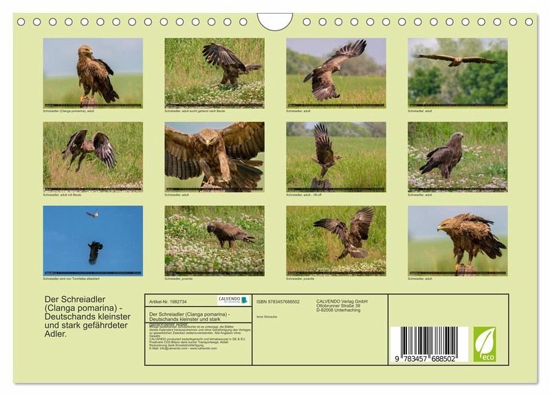 QUALITÄT - Hochwertiger Fotokalender mit 12 wunderschönen Motiven auf lichtbeständigem Bilderdruckpapier, robuste Spiralbindung mit Aufhängebügel.NACHHALTIG - deutliche Abfallreduzierung durch bedarfsgerechte Einzelstückfertigung, umweltfreundliches FSC-zertifiziertes Papier, Produktion in Deutschland, klimabewusste Logistik.PERFEKTES GESCHENK - Kalender für Freunde und Familie, für Kinder und Erwachsene, jung und alt, zu Weihnachten, Geburtstag oder zwischendurch.VIELFALT - Bildkalender in verschiedenen Formaten, z.B. DIN A5, DIN A4, DIN A3 sowie DIN A2. Ob Naturmotiv, Gemälde oder Fotos, ideal für ein persönliches Wohlfühlambiente.Ein Portrait des sehr seltenen Schreiadler, der in Deutschland direkt vom Aussterben bedroht ist. von Autor(in): Arne Wünsche
