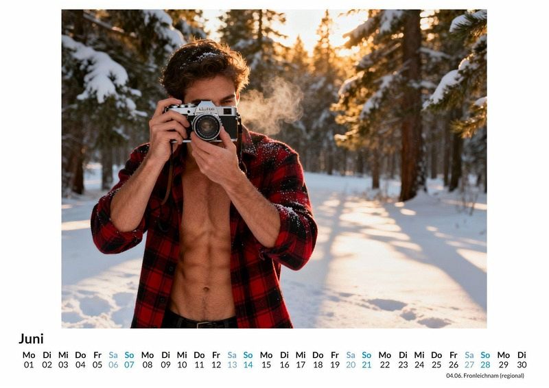 Hinter der Linse verbirgt sich mehr als nur ein Auge für das perfekte Bild. Der Kalender "Der sexy Fotograf" fängt die Momente ein, in denen der Künstler selbst zum Mittelpunkt wird. Jeder Monat enthüllt eine neue Facette des Mannes hinter der Kamera, dessen Leidenschaft nicht nur seinen Motiven gilt. Die Kompositionen spielen mit Licht, Schatten und der Andeutung von Haut. Dieser Kalender ist eine ausgezeichnete Wahl: Für Liebhaber der ästhetischen Fotografie und des männlichen Körpers. Für Menschen, die das Spiel zwischen Beobachter und Beobachtetem schätzen. Für alle, die eine unkonventionelle und geschmackvolle Erotik suchen. Zwölf Aufnahmen zeigen den Fotografen in seinem Element. Das Hemd ist aufgeknöpft, der Blick durch den Sucher seiner Kamera konzentriert. Der Fokus liegt auf der Spannung des Augenblicks, kurz bevor der Auslöser gedrückt wird. Diese Szenen, die eine Geschichte von Hingabe und Kreativität erzählen, wurden durch die Verschmelzung von fotografischen Konzepten und computergenerierter Bildsynthese erschaffen. Die Bilder fangen eine Atmosphäre voller Konzentration und Hingabe ein. Was der Kalender bietet: Ein Wandkalender mit zwölf Monatsblättern im Hochformat. Ein praktisches Kalendarium für die Organisation des Alltags. Ein visueller Begleiter durch das Jahr, der jeden Monat eine neue Perspektive bietet. Dieser Kalender ist eine Hommage an den kreativen Prozess und die Person dahinter. Er verbindet die Kunst der Fotografie mit einer modernen, sinnlichen Darstellung. Es lohnt sich, einen genaueren Blick auf die einzelnen Motive zu werfen und die Details zu entdecken.