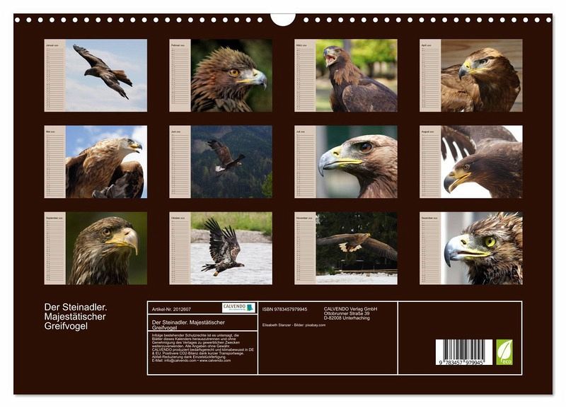 QUALITÄT - Hochwertiger Fotokalender mit 12 wunderschönen Motiven auf lichtbeständigem Bilderdruckpapier, robuste Spiralbindung mit Aufhängebügel.NACHHALTIG - deutliche Abfallreduzierung durch bedarfsgerechte Einzelstückfertigung, umweltfreundliches FSC-zertifiziertes Papier, Produktion in Deutschland, klimabewusste Logistik.PERFEKTES GESCHENK - Kalender für Freunde und Familie, für Kinder und Erwachsene, jung und alt, zu Weihnachten, Geburtstag oder zwischendurch.VIELFALT - Bildkalender in verschiedenen Formaten, z.B. DIN A5, DIN A4, DIN A3 sowie DIN A2. Ob Naturmotiv, Gemälde oder Fotos, ideal für ein persönliches Wohlfühlambiente.Der faszinierende und mächtige König der Lüfte von Autor(in): Elisabeth Stanzer