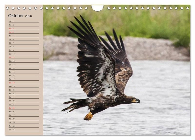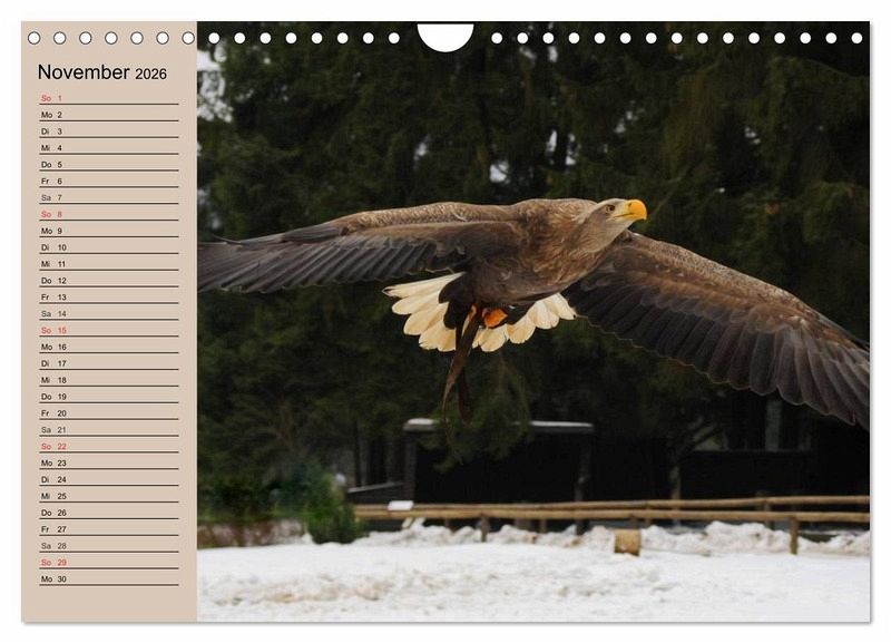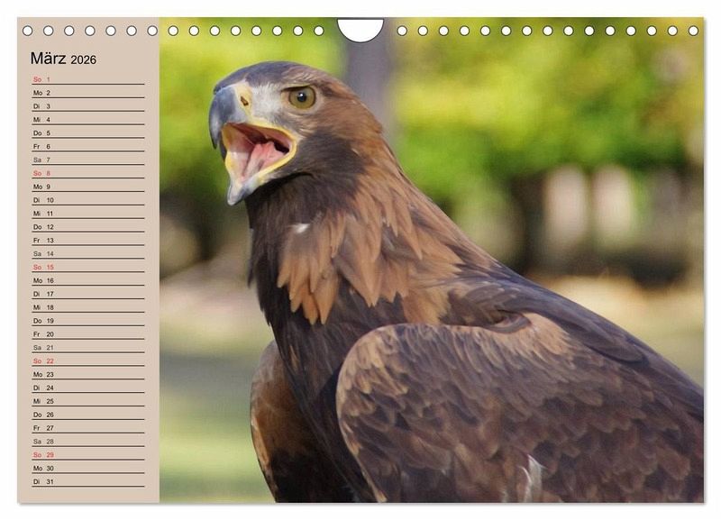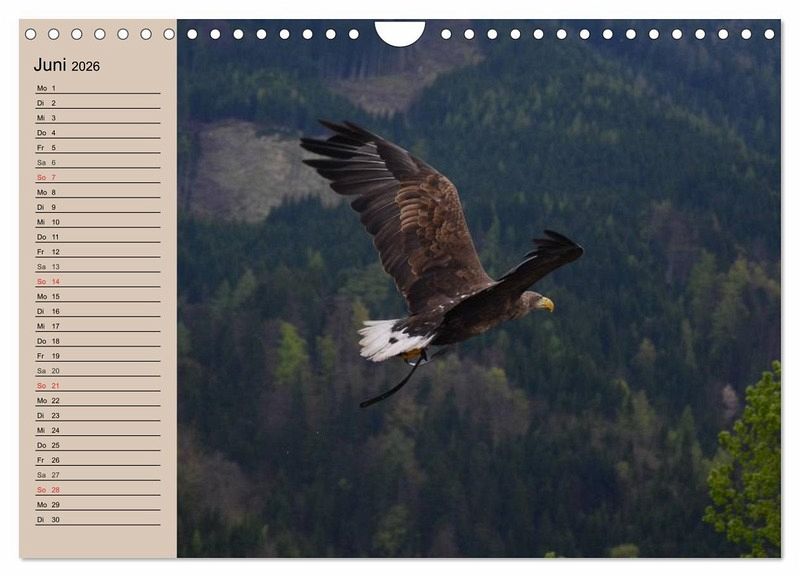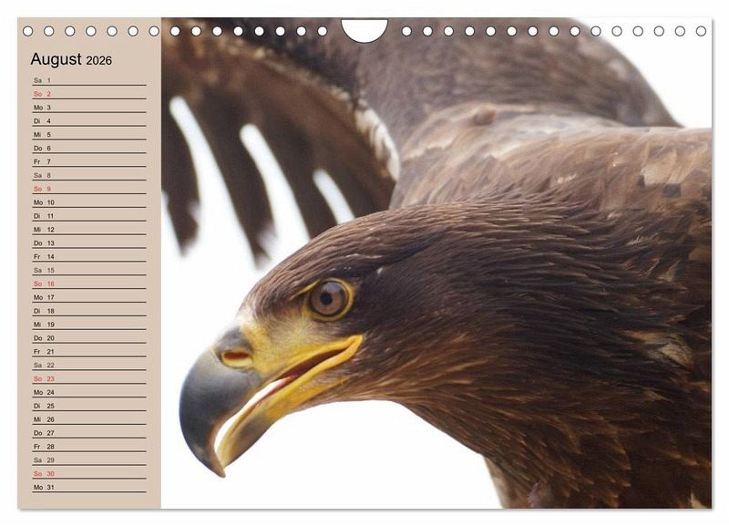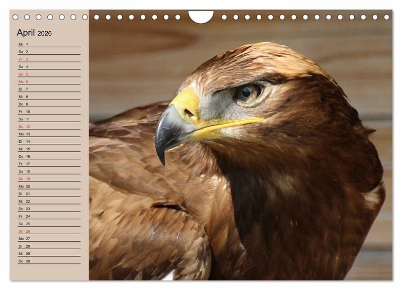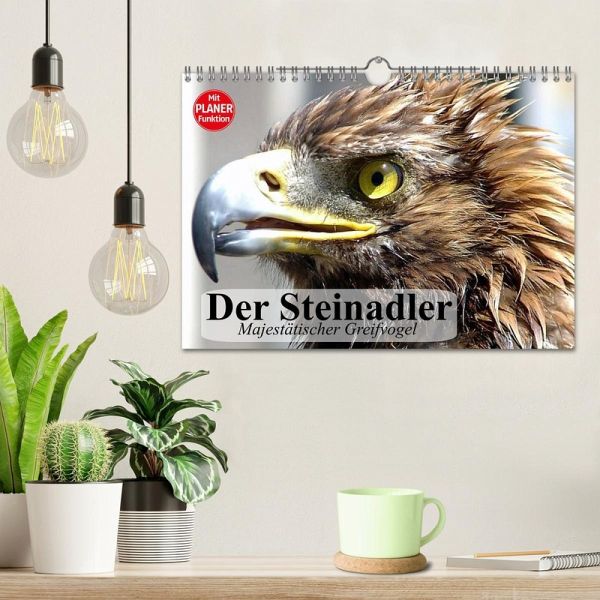 Der Steinadler ist nach dem Seeadler der größte in Deutschland beheimatete Greifvogel. Mit seiner Flügelspannweite von bis zu 230 cm ist er eine wirklich beeindruckende Erscheinung. Ein schöner Planer für alle Adler- und Greifvogel-Liebhaber.