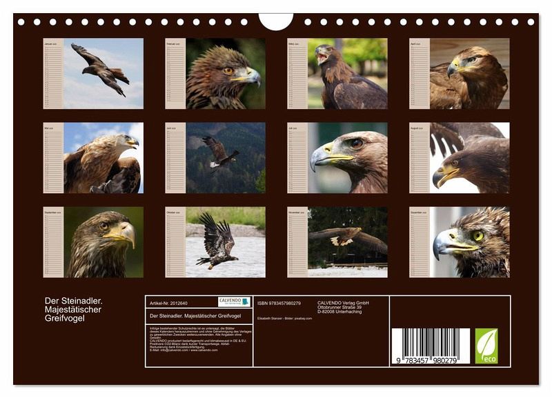 QUALITÄT - Hochwertiger Fotokalender mit 12 wunderschönen Motiven auf lichtbeständigem Bilderdruckpapier, robuste Spiralbindung mit Aufhängebügel.NACHHALTIG - deutliche Abfallreduzierung durch bedarfsgerechte Einzelstückfertigung, umweltfreundliches FSC-zertifiziertes Papier, Produktion in Deutschland, klimabewusste Logistik.PERFEKTES GESCHENK - Kalender für Freunde und Familie, für Kinder und Erwachsene, jung und alt, zu Weihnachten, Geburtstag oder zwischendurch.VIELFALT - Bildkalender in verschiedenen Formaten, z.B. DIN A5, DIN A4, DIN A3 sowie DIN A2. Ob Naturmotiv, Gemälde oder Fotos, ideal für ein persönliches Wohlfühlambiente.Der faszinierende und mächtige König der Lüfte von Autor(in): Elisabeth Stanzer