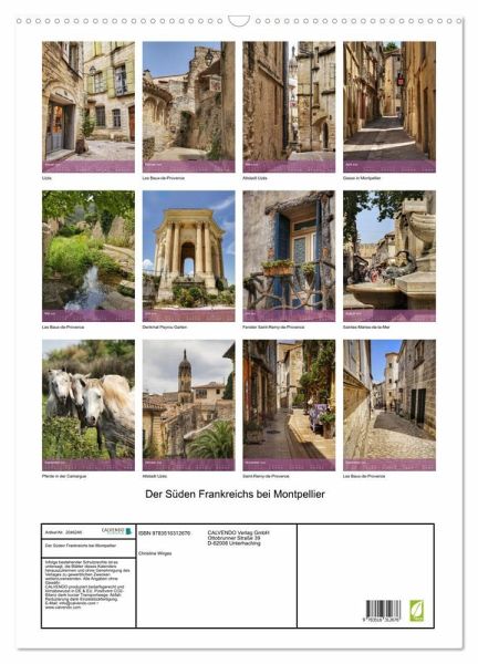 Eine Reise in der Umgebung von Montpellier mit seinen schönen, malerischen Orten mitten in der Provence. Van Gogh lebte hier eine Zeitlang und schuf 150 Gemälde von dieser schönen Gegend. Der Kalender zeigt einige Ansichten der Orte mit ihrem romantischen, mittelalterlichen Flair.