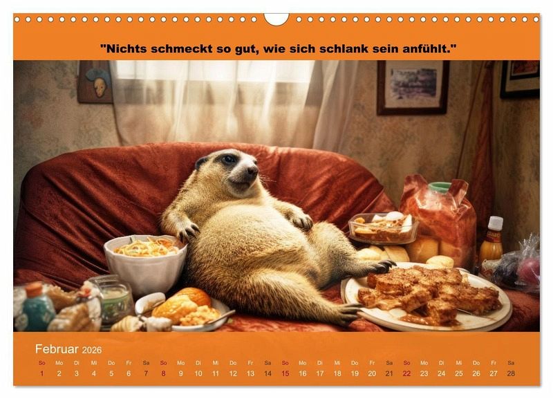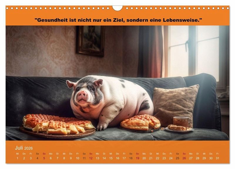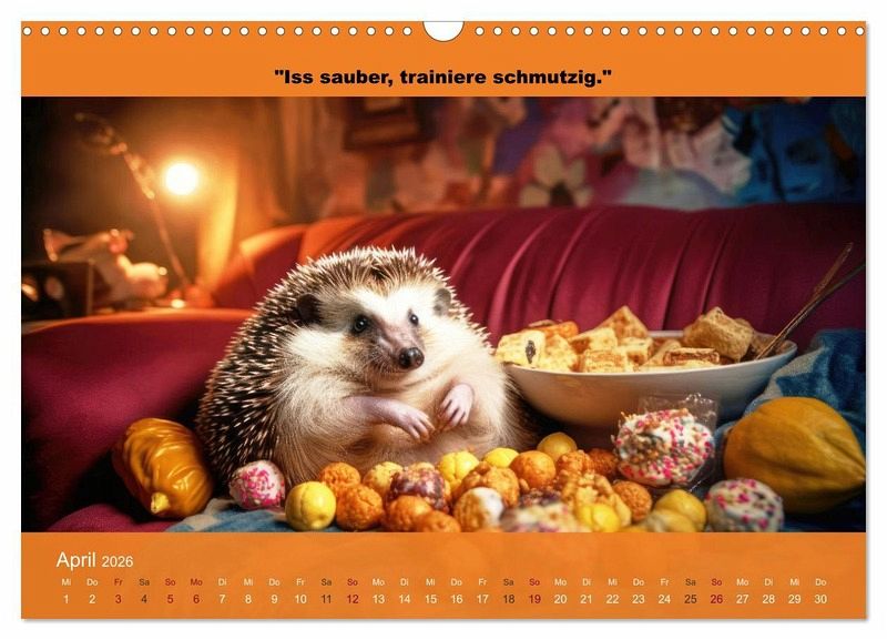 Entdecken Sie den ultimativen Motivationsboost für Ihr Abnehmziel. Unser einzigartiger Kalender begleitet Sie durch das Jahr mit einem Lächeln! Jeden Monat erwartet Sie ein humorvoller Spruch, gepaart mit einem unwiderstehlich lustigen Tierbild, das Sie inspiriert, Ihre Fitnessziele mit Freude anzugehen. Vergessen Sie langweilige Diätpläne und monotone Workouts. Mit unserem Kalender wird jede Gewichtsreduktion zur fröhlichen Herausforderung. Lassen Sie sich Monat für Monat motivieren, bleiben Sie dran an Ihren Zielen und genießen Sie den Weg zu einem gesünderen Ich. Mit unserem Kalender an Ihrer Seite wird jeder Tag zu einem Schritt voller Freude und Lachen auf Ihrer Reise zum Wunschgewicht. Holen Sie sich jetzt Ihren Begleiter für ein Jahr voller Motivation und Spaß!