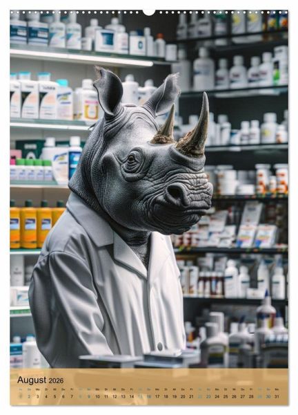 August: Nashorn als Apotheker / Apothekenmitarbeiter