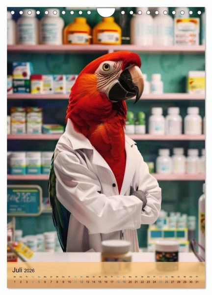 Juli: Papagei als Apotheker / Apothekenmitarbeiter