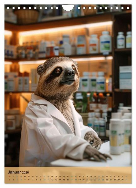 Januar: Faultier als Apotheker / Apothekenmitarbeiter