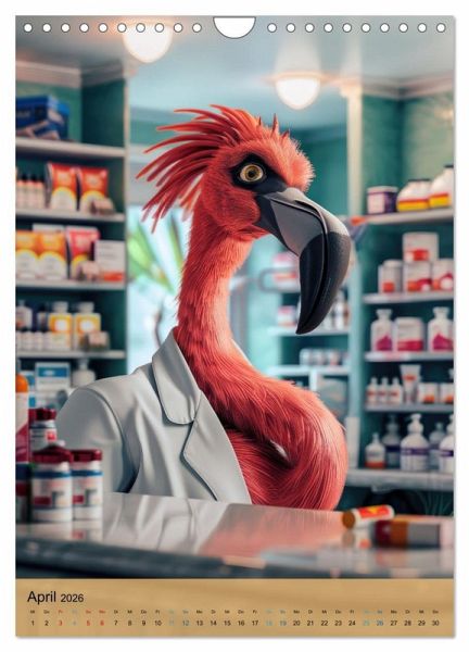 April: Flamingo als Apotheker / Apothekenmitarbeiter