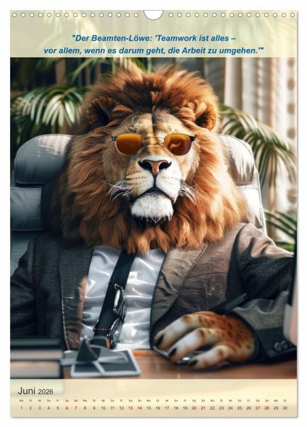 Entdecken Sie den ultimativen Schmunzler für Ihren Schreibtisch: "Der tierisch lustige Beamtenkalender"! Mit diesem einzigartigen Jahresbegleiter holen Sie sich Monat für Monat eine Extraportion Humor ins Büro. Jede Seite präsentiert ein herrlich faules Tier, das in den skurrilsten Positionen die Kunst des Nichtstuns zelebriert - perfekt abgestimmt auf humorvolle und geistreiche Zitate, die das Beamtenherz höher schlagen lassen. Dieser mit KI generierte Kalender ist eine liebevolle Hommage an alle Beamten, die den Büroalltag mit einem Augenzwinkern nehmen. Ein ideales Geschenk, das garantiert…mehr