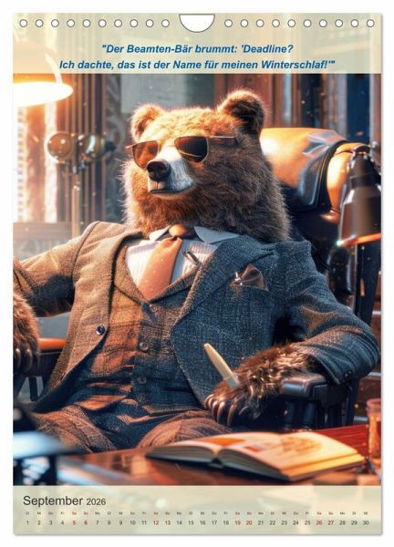 Entdecken Sie den ultimativen Schmunzler für Ihren Schreibtisch: "Der tierisch lustige Beamtenkalender"! Mit diesem einzigartigen Jahresbegleiter holen Sie sich Monat für Monat eine Extraportion Humor ins Büro. Jede Seite präsentiert ein herrlich faules Tier, das in den skurrilsten Positionen die Kunst des Nichtstuns zelebriert - perfekt abgestimmt auf humorvolle und geistreiche Zitate, die das Beamtenherz höher schlagen lassen. Dieser mit KI generierte Kalender ist eine liebevolle Hommage an alle Beamten, die den Büroalltag mit einem Augenzwinkern nehmen. Ein ideales Geschenk, das garantiert…mehr