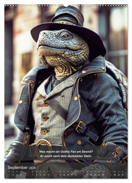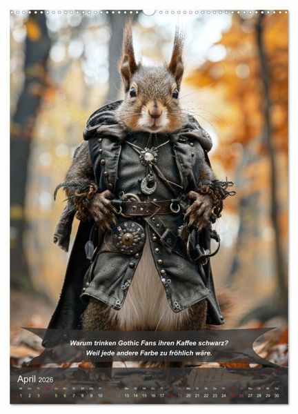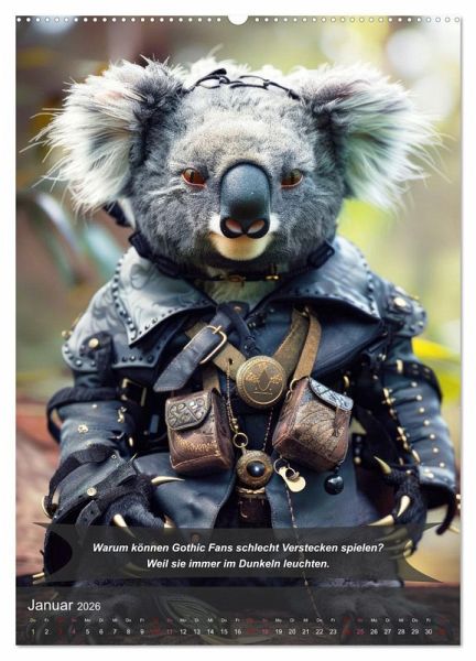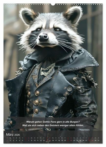 Tauchen Sie ein in die Welt des tierisch lustigen Gothic Kalenders. Ihr unverzichtbarer Begleiter durch das Jahr, der die düstere Eleganz des Gothic mit der unbeschwerten Heiterkeit der Tierwelt verbindet. Monat für Monat erwarten Sie exklusive, mit viel Liebe zum Detail gestaltete KI Bilder, die unsere vierbeinigen Freunde in atemberaubenden Gothic-Outfits präsentieren. Die humorvollen Witze und Sprüche, die jedes Bild begleiten, bringen garantiert ein Schmunzeln auf die Lippen jedes Gothic-Fans. Ob als treuer Begleiter durch das Jahr oder als ideales Geschenk für Freunde der Nacht - "Der tierisch Lustige Gothic Kalender" ist ein Muss für jeden, der das Außergewöhnliche liebt. Holen Sie sich jetzt den diesen Gothic Kalender und machen Sie jeden Tag zu einem besonderen Erlebnis.