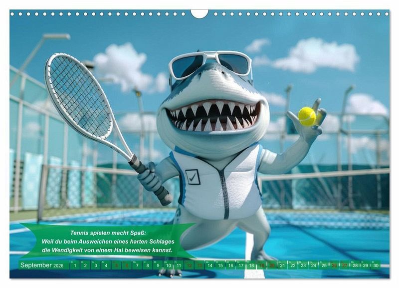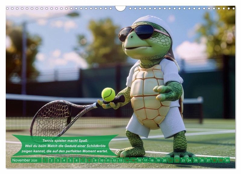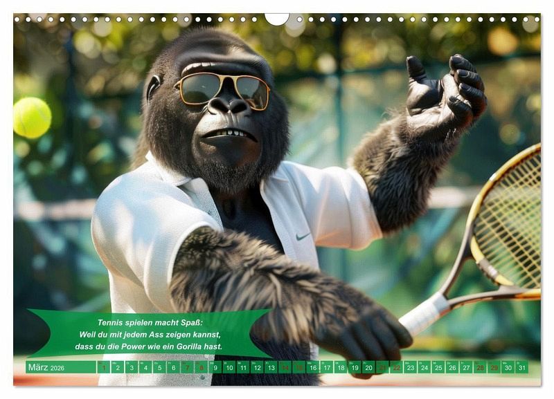 Entdecken Sie den ultimativen Jahreskalender für Tennisliebhaber mit einer tierisch lustigen Wendung. Der "Tierisch Lustige Tennis-Kalender" ist Ihr täglicher Schlagabtausch voller Humor und Charme. Jeden Monat erwartet Sie ein einzigartiges mit KI erstelltes Bild von Tieren, die in voller Tennis-Montur den Schläger schwingen. Dieser Kalender bringt garantiert ein Lächeln auf die Lippen jedes Tennisfans. Jedes Bild wird von einem witzigen Spruch begleitet, der die Persönlichkeit unserer vierbeinigen Tennisstars perfekt einfängt. Ob es um den Ehrgeiz im Spiel geht oder um die lustigen Pannen…mehr