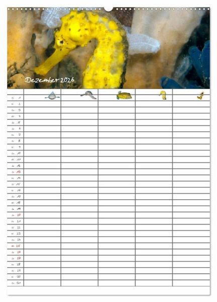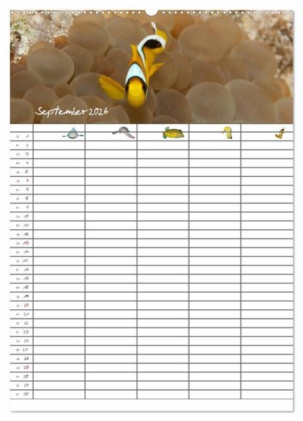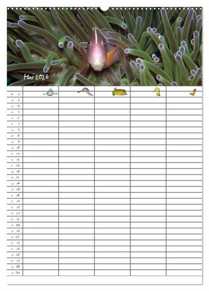Verpassen Sie und Ihre Familie keinen Termin mehr. Der lehrreiche Familienplaner (mit fünf Spalten) entzückt durch zauberhafte Unterwasserbilder.