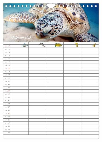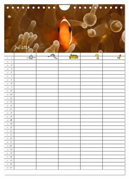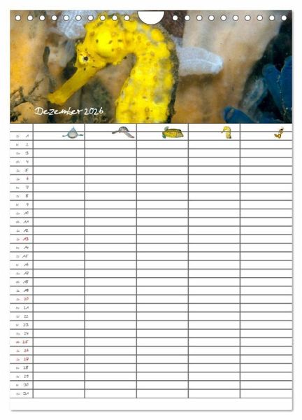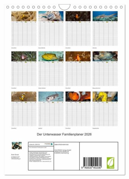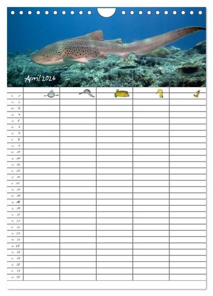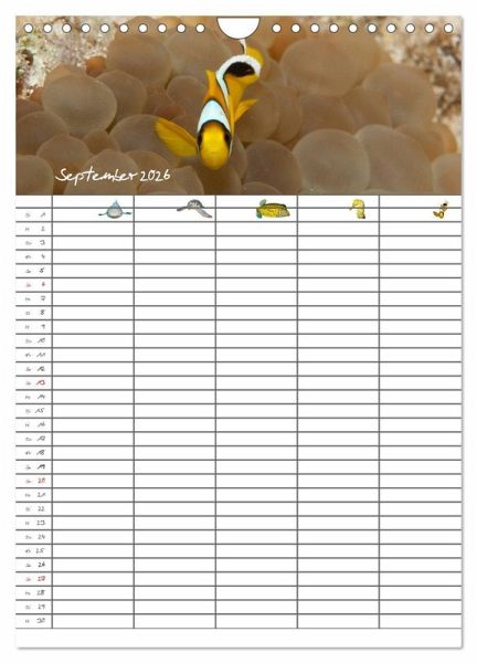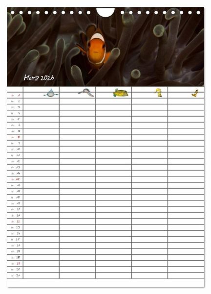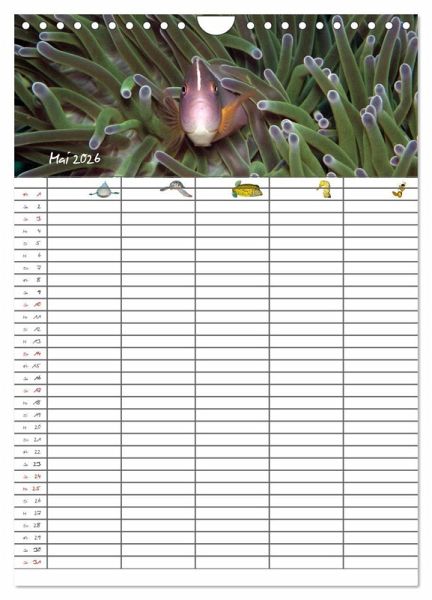 Verpassen Sie und Ihre Familie keinen Termin mehr. Der lehrreiche Familienplaner (mit fünf Spalten) entzückt durch zauberhafte Unterwasserbilder.