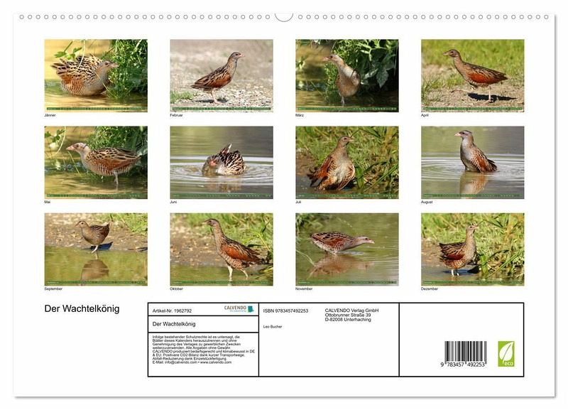 Entdecke die faszinierende Welt des bedrohten Wachtelkönigs mit unserem exklusiven Tierkalender! Zauberhafte Fotos zeigen diesen eleganten Vogel in seiner natürlichen Umgebung. Die sehr seltenen Auftritte außerhalb seines Lebensraums im hohen Gras wurden in atemberaubenden Aufnahmen festgehalten. Ein perfektes Geschenk für Tierliebhaber und Naturschutzfreunde.