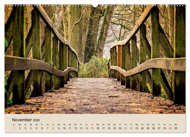 November: Romantische Holzbrücke im Wald