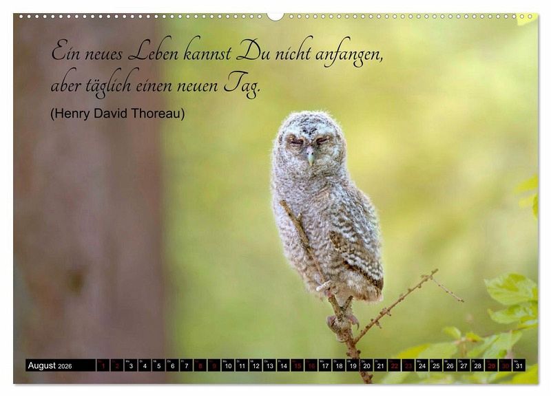 Seit jeher bin ich fasziniert von Waldkäuzen und immer auf der Suche nach neuen Stellen, an denen sie Zuhause sind. Mit meinem zweiten Kalender über diese faszinierenden Vögel möchte ich erneut auf deren Schönheit aufmerksam machen. Kombiniert mit Zitaten und Weisheiten, mit welchen gerade Eulen immer wieder in Verbindung gebracht werden.