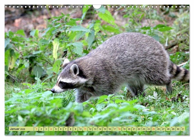 Waschbären gibt es auf fast allen Kontinenten. Der aus Nordamerika stammende Geselle, fühlt sich auch in unseren Wäldern zu Hause. Den hauptsächlich nachtaktive Jäger habe ich in sehenswerten Bildern im Kalender verewigt.