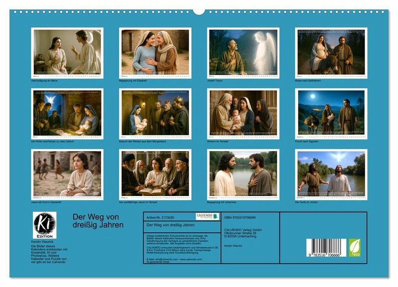 Dieser Kalender zeigt in einfühlsamen, KI-gestützten Bildern die verborgenen Jahre Jesu - von der Verkündigung bis zur Taufe im Jordan. Abseits der bekannten Weihnachtsdarstellungen öffnen sich hier Szenen, die sonst selten im Bild zu sehen sind. So entstehen eindrucksvolle Motive, die vertraut wirken und doch neu berühren - ein stiller Weg durch dreißig Jahre, in denen das Geheimnis heranwuchs.