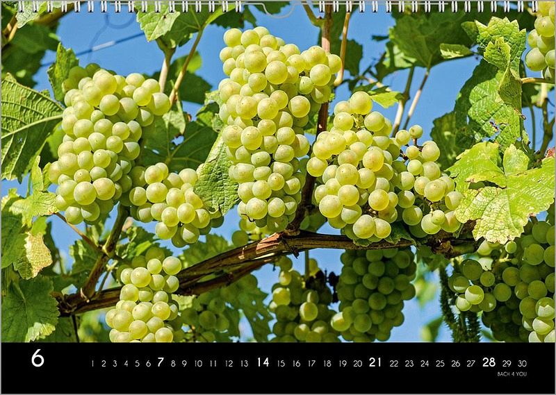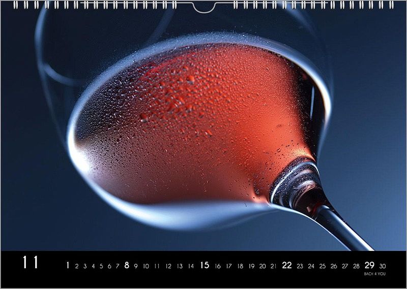 Der Weinkalender 2026 ist eine Kollektion von 12 hervorragend fotografierten Weinmotiven, die den Weinliebhaber durch das Jahr im Weinberg begleiten. Genau aus diesem Grund zieren alte Wein-Holzfässer und im Februar Weingläser die ersten beiden Monate im Jahr. Über die ersten zarten Knospen der Weintrauben führt das Kalenderjahr hin zum Sommer mit vollen reifen Trauben am Weinstock. Die Herbstmonate begleiten 2 herrliche Fotos von einem Weinberg im Herbst und einem bildfüllenden Weinblatt in buntem gelb, grün und rot vor einem blauen Himmel. Im November erreicht die Kalender-Saison mit einem modern fotografierten, gefüllten Rotwein-Glas ihren Höhepunkt. Der Dezember beschließt den Weinkalender schließlich mit einem Winterbild des Weinberges: Raureif überzieht die Reben an einem nebeligen, düsteren Tag. Das Kalendarium in diesem Weinkalender ist so gehalten, dass es in allen Sprachen funktioniert.