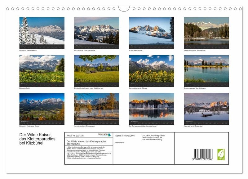 QUALITÄT - Hochwertiger Fotokalender mit 12 wunderschönen Motiven auf lichtbeständigem Bilderdruckpapier, robuste Spiralbindung mit Aufhängebügel.NACHHALTIG - deutliche Abfallreduzierung durch bedarfsgerechte Einzelstückfertigung, umweltfreundliches FSC-zertifiziertes Papier, Produktion in Deutschland, klimabewusste Logistik.PERFEKTES GESCHENK - Kalender für Freunde und Familie, für Kinder und Erwachsene, jung und alt, zu Weihnachten, Geburtstag oder zwischendurch.VIELFALT - Bildkalender in verschiedenen Formaten, z.B. DIN A5, DIN A4, DIN A3 sowie DIN A2. Ob Naturmotiv, Gemälde oder Fotos, ideal für ein persönliches Wohlfühlambiente.Das Kaisergebirge in Tirol, der Wilde Kaiser im Nordwesten von Kitzbühel von Autor(in): Peter Überall