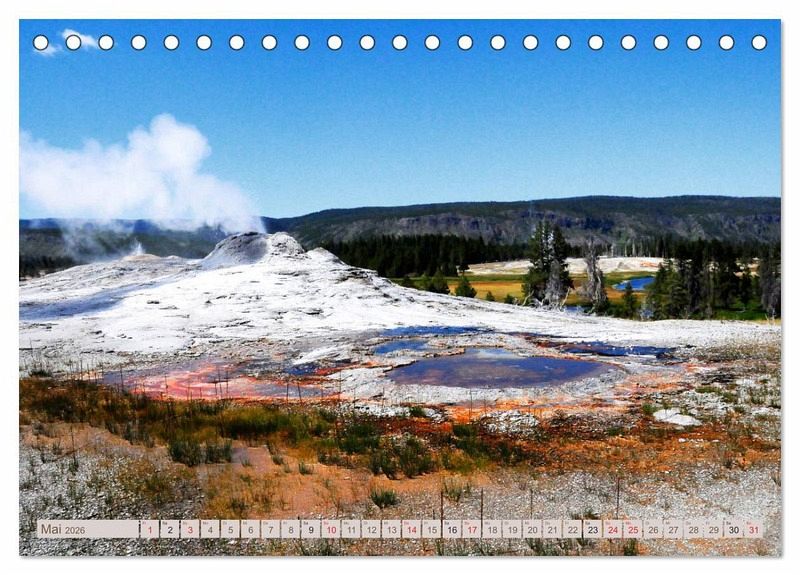 Der Yellowstone Nationalpark ist der älteste Nationalpark der Welt und wird gespeist durch den Namen gebenden Fluss Yellowstone. Durch ihn entstanden phantastische Gebiete zahlreicher, teils sehr massiver Wasserfälle. Desweiteren ist man im Yellowstone Nationalpark der Erde ganz bewusst nahe, denn hier ist die Erdkruste so dünn wie selten auf der Welt. Geysire entstehen und sind aktiv, speien Fontänen meterhoch in die Lüfte und dennoch ist der Nationalpark auch die Heimat der großen Tierwelt. In diesem Kalender erhalten sie mit jeder Seite neue Eindrücke dieses begeisternden Naturwunders der Erde.